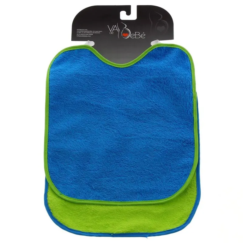 Pack de 2 baberos de rizo toalla con reverso impermeable. Disponen de goma elástica en el cuello para facilitar la autonomía del niño a la hora de colocárselo.