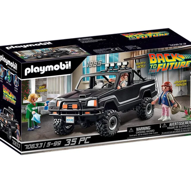Pack de la colección Playmobil inspirada en la película Regreso al Futuro en la que encontrarás una alucinante camioneta con espacio para 2 figuras. Contiene las figuras Playmobil de Marty McFly, Jennifer Parker y Bliff Tannen. Incluye una postal coleccionista para los fans de las famosas películas. Recomendado a partir de 4 años.