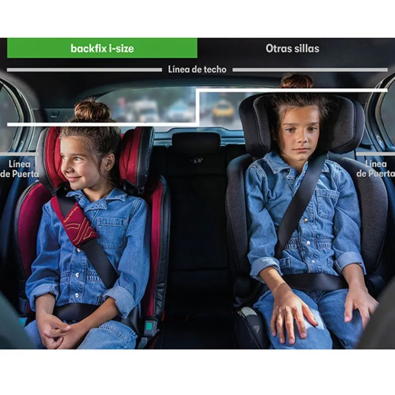 Backfix ISize es el nuevo concepto de elevados sin asiento de Casualplay desde 100cm hasta los 150cm de altura (4 años hasta los 12 años aproximadamente), sitúa al niño en la posición más segura, directamente sobre el asiento del vehículo.