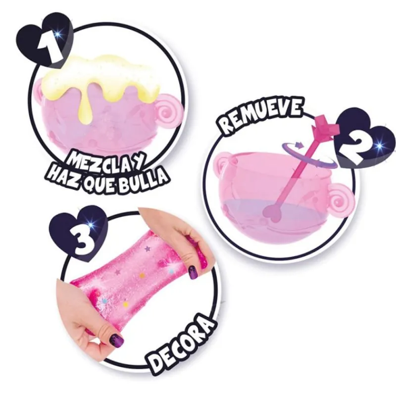 ¡Con Caldero Hechicero podrás hacer magia! Podrás crear tu propio slime y además decorarlo como más te guste. En el interior encontrarás 2 bolsas de purpurina, una varita para revolver, una bola para hacer slime y un cuenco para el agua. Recomendado a partir de 6 años. EXISTEN MODELOS DIFERENTES. SE VENDEN POR SEPARADO. SE SURTIRÁN SEGÚN EXISTENCIAS. AL REALIZAR LA COMPRA, PUEDES RECIBIR CUALQUIER MODELO SURTIDO AL AZAR, INCLUIDOS MODELOS QUE NO SE ENCUENTREN EN LAS FOTOS. PRECIO POR UNIDAD