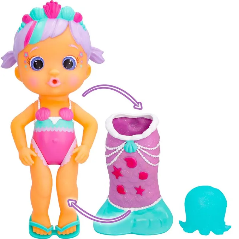 Muñeca de la colección Bloopies Magic Tail Mermaids ¡Las mejores compañeras del baño que ahora tienen colas brillantes con purpurina! Esta muñeca tiene una cola de purpurina que se puede poner y quitar, y además, los detalles de la cola cambian de calor con agua caliente. Luce unos maravillosos faciales y viene con 2 looks, el primero con bañador y el segundo con cola de sirena. Viene acompañada de una mascota de purpurina, con cuerpo de plástico, que al apretarlo lanza agua y hace pompas. Recomendado a partir de 18 meses.