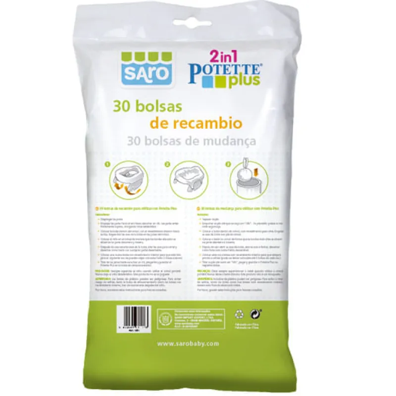 30 Bolsas de Recambio súper absorbentes, perfumadas y herméticas para el Orinal Potette Plus.