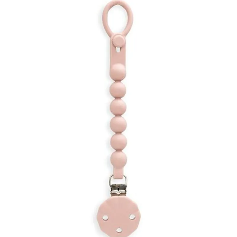 Cadena porta chupete de silicona que se adapta a los chupetes con anilla, y pinza para sujetar en la ropa.