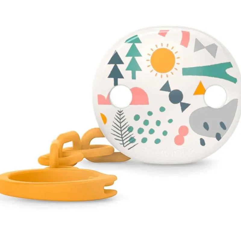 Cadena para el chupete con broche que permite sujetarlo suavemente a la ropa del bebe o al carro evitando que caiga al suelo y se ensucie o bien se pierda