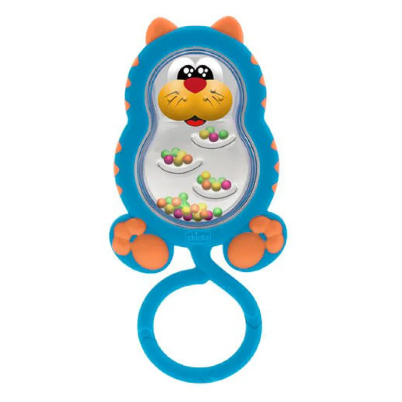 Este adorable gatito es un sonajero con forma ergonómica para su facilidad de agarre. Al moverlo como una maraca, se escuchará el sonido de las bolitas de su interior para potenciar los primeros estímulos auditivos del bebé.