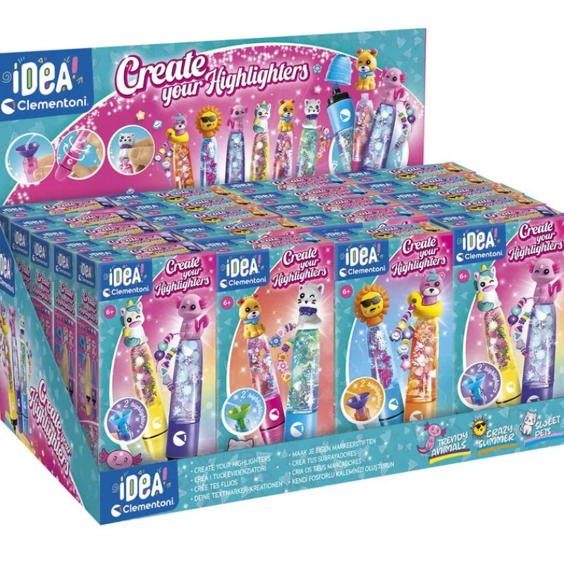 Contiene los subrayadores, tintas de diferentes colores, 3 accesorios y las herramientas para hacerlos.