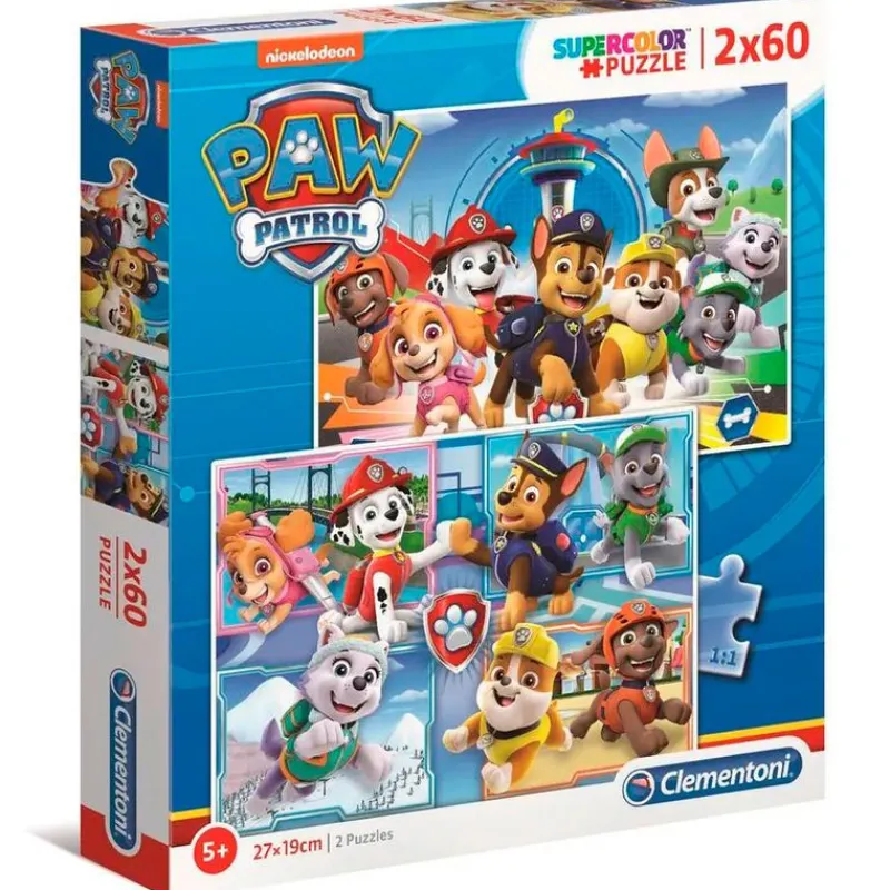 Pack en el que encontrarás 2 puzzles de 60 piezas cada uno inspirados en la serie de animación Patrulla Canina.