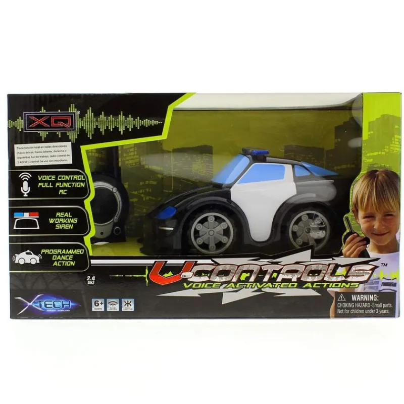Coche Policía radiocontrol infantil con sonido y frecuencia 2.4 Ghz.Diriguelo por voz con su mando en todas direcciones.