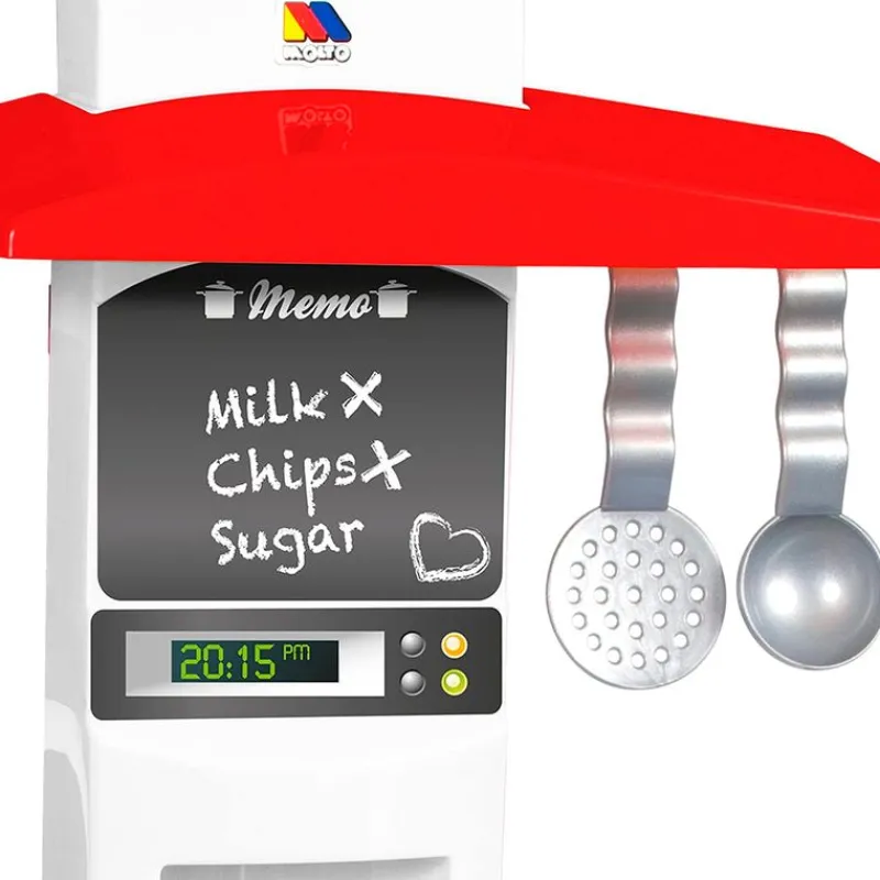Fabulosa cocina totalmente equipada con horno, campana extractora, microondas, lavadora y 12 accesorios de cocina. ¡Conviértete en el mejor cocinero y sorprende a tus comensales con tus recetas! La puerta del horno y de la lavadora se abren como los de verdad.