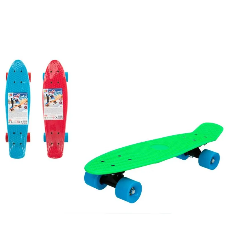 Monopatín con 4 ruedas de 55cm.Peso máximo 50 kg.Eje de aluminio y ruedas PVC.Disponible en 3 colores.EXISTEN MODELOS DIFERENTES. SE VENDEN POR SEPARADO. SE SURTIRÁN SEGÚN EXISTENCIAS. AL REALIZAR LA COMPRA, PUEDES RECIBIR CUALQUIER MODELO SURTIDO AL AZAR, INCLUIDOS MODELOS QUE NO SE ENCUENTREN EN LAS FOTOS. PRECIO POR UNIDAD