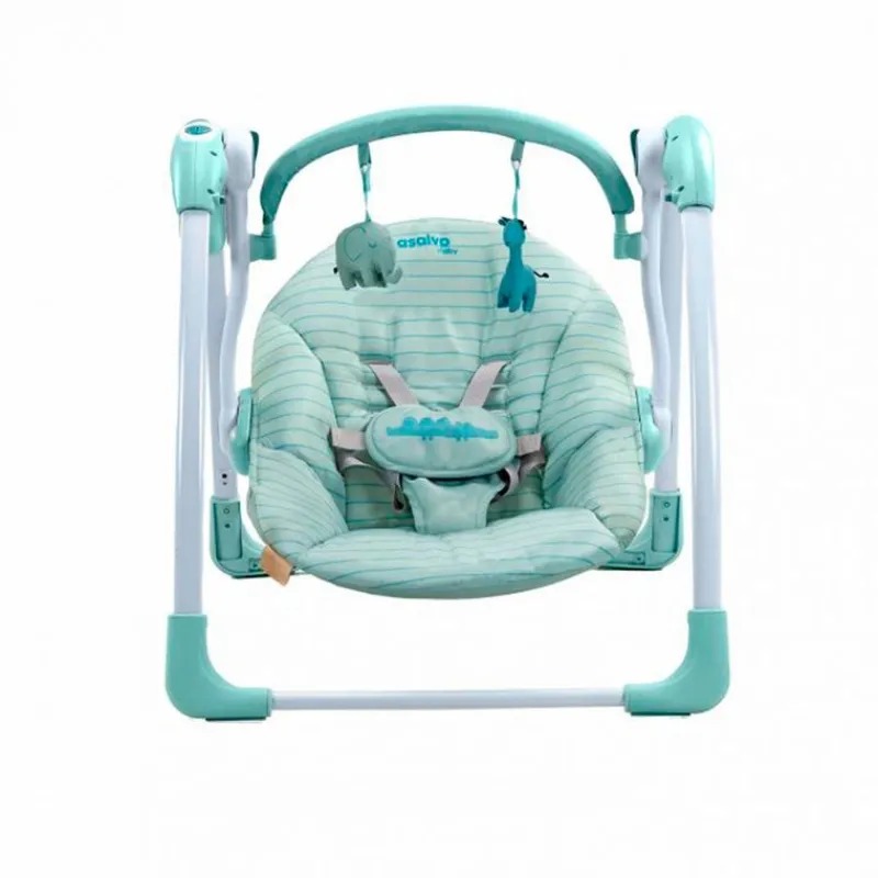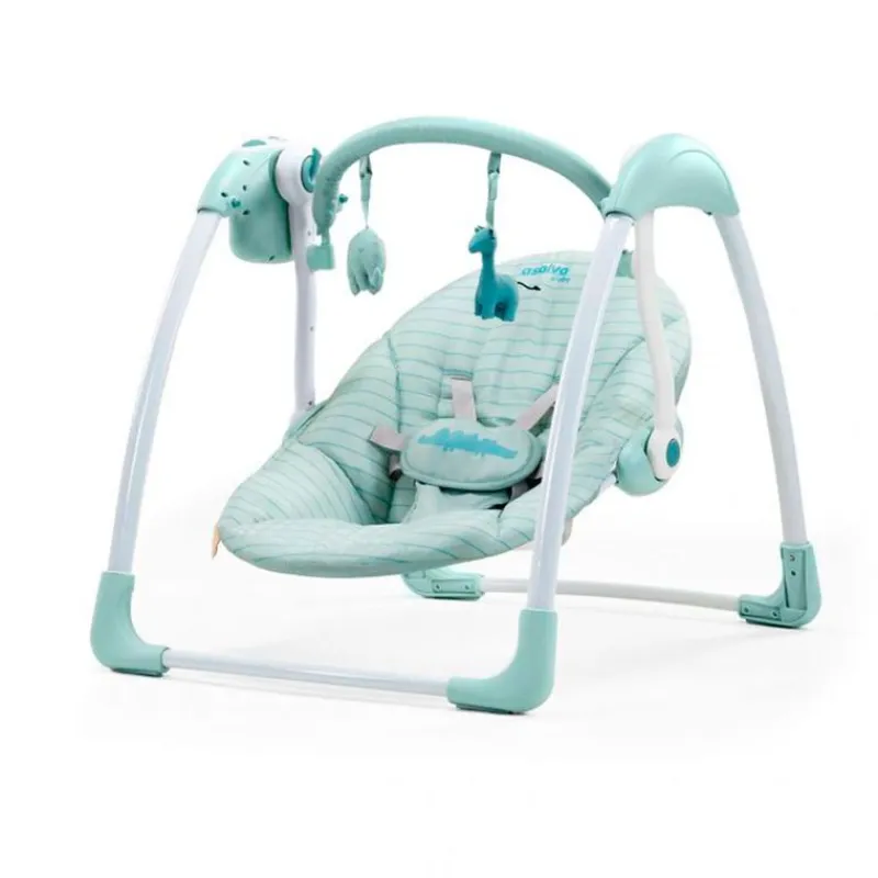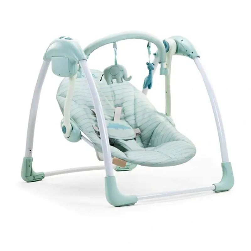 Columpio musical con varias velocidades, melodías y un suave balanceo automático, que tiene la opción de funcionar bien con pilas ( no incluidas) o con un adaptador de corriente.