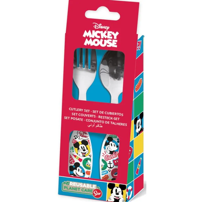 Set de 2 cubiertos en acero inoxidable( cuchara y tenedor), pensado para los niños un poco más mayores, para que se vayan a acostumbrando a usarlos y ser lo más parecido al de los adultos