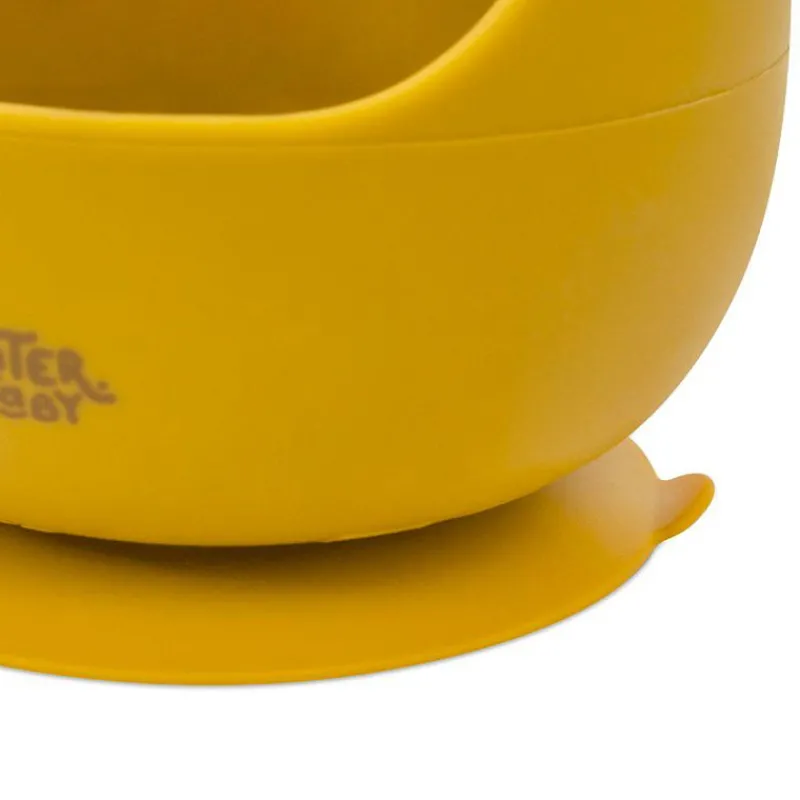 Set de bol con ventosa de silicona y cuchara para las primeras papillas de tú bebe. El cuenco lleva una ventosa en la base para fijarse firmemente en la mesa y evitar que se vuelque mientras come el peque