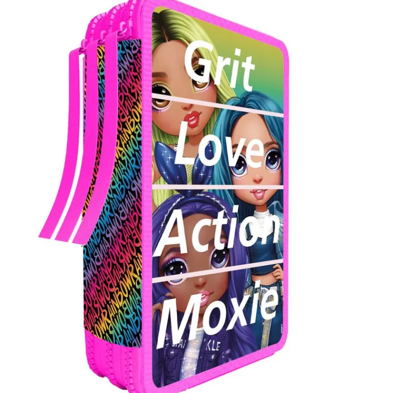 Plumier triple con diseños inspirados en tus muñecas favoritas, las Rainbow High. En el interior encontrarás rotuladores de diferentes colores, lápices de colores, y muchos accesorios más.