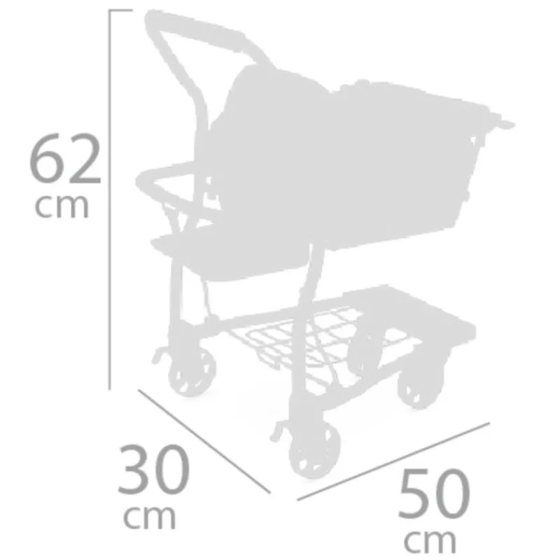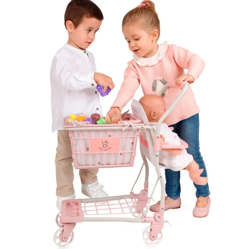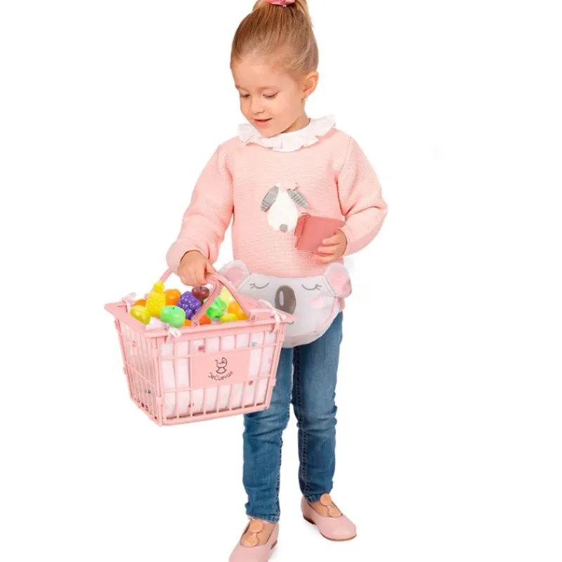 arro de la compra para los más pequeños de la casa, que motivan el juego más realista y completo posible. Su diseño es de color rosa y blanco con diseño especial de la línea Koala, cesta de la compra extraíble, ruedas giratorias delanteras, espacio para el muñeco bebe (NO incluido) y pack con accesorios de plástico incluidos. Sus dimensiones son de 62 cm de alto x 30 cm de ancho x 50 cm de largo. Compatible para bebés de hasta 50 cm de largo. *Nota: para ver si el carrito puede venirle bien en altura, mida desde el suelo hasta el codo de la niña y comparelo con la altura del manillar. Recomendado a partir de 3 años