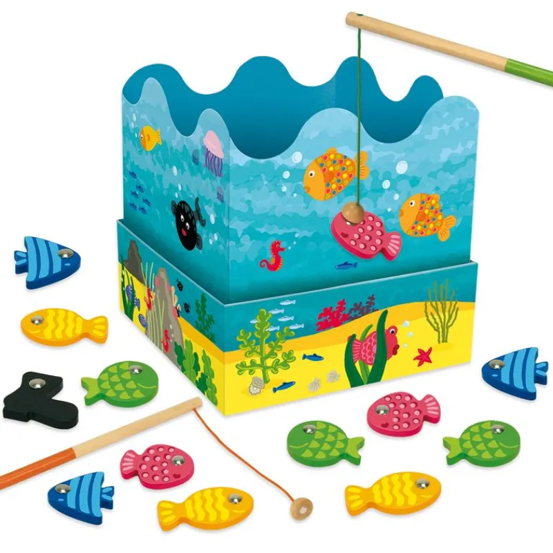 Divertido juego de mesa para los más pequeños de la casa con el que podrán poner a prueba su puntería y paciencia ¡Conviértete en el mejor pescador de pececillos! ¿Cuántos serás capaz de pescar? Para 2 jugadores. Recomendado a partir de 2 años.