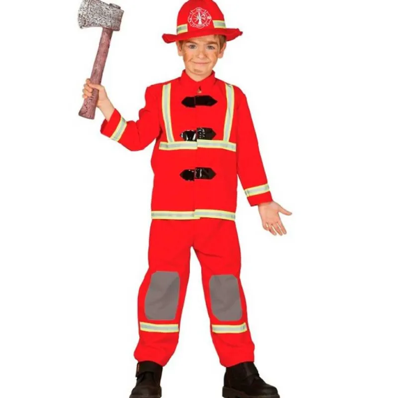 Disfraz de bombero infantil en el que encontrarás un gorro rojo, una chaqueta roja con franjas y un pantalón rojo. NO contiene accesorios.