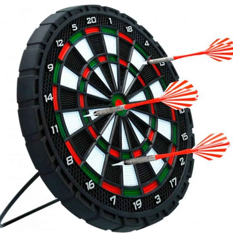Diana de dardos de 31 cm de diámetro. En el interior encontrarás 3 dardos, de punta de plástico, con los que practicar tu puntería. Ideal para desarrollar la concentración. Recomendado a partir de 14 años.