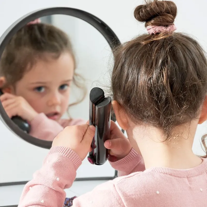 Pack con el que las más pequeñas de la casa podrás divertirse mientras crean sus propios peinados. En el interior encontrarás accesorios inspirados en la famosa marca Dyson. Conteine una plancha Corrale que reproduce luces y sonidos, un soporte para la plancha, un cepillo de barril y un peine desenredante. Funciona con 3 pilas AAA NO incluidas. Recomendado a partir de 3 años.