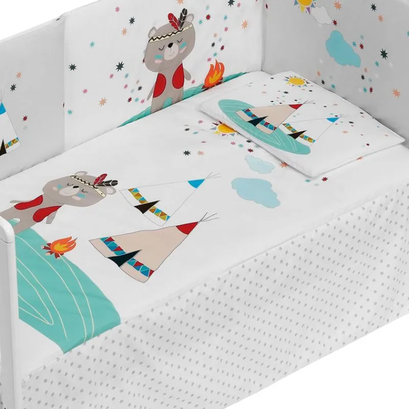 Este conjunto de ropa de cuna de 3 piezas está diseñado especialmente para cunas de 60×120 cm. Fabricado con tejidos 100% algodón de alta calidad, proporciona a la habitación de tu bebé una sensación cálida, confortable y segura.