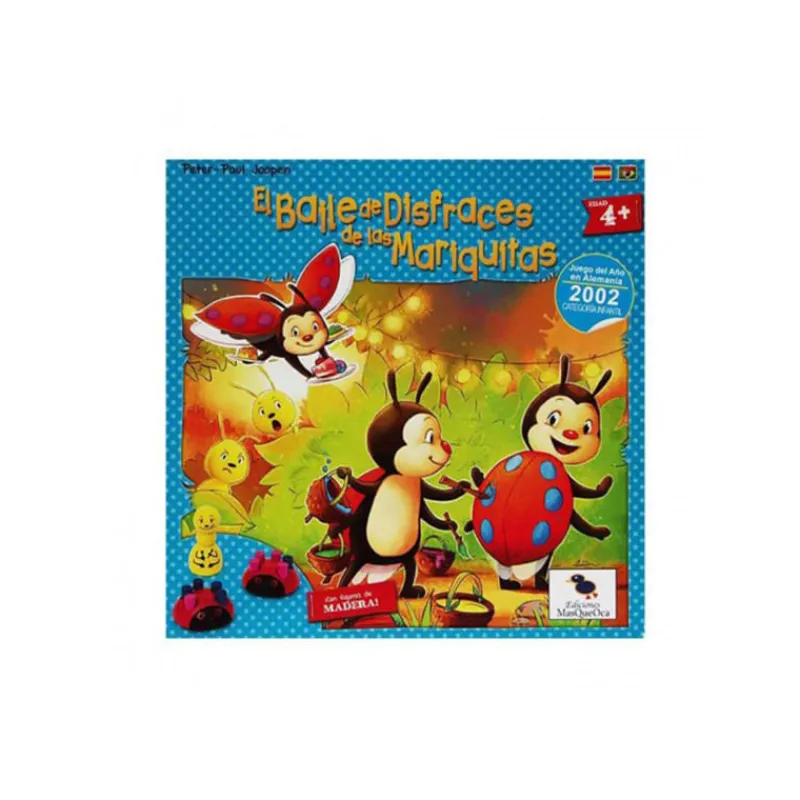 En el Baile de Disfraces de las Mariquitas cada jugador por turnos, debe hacer girar la flecha central. Si la flecha apunta a una mariquita, deberá col • locar ante otra para saber si se quiere intercambiar los puntos. Marieta, quieres cambiar un punto conmigo? Si la mariquita se quieres intercambiar los puntos pegarán como si se hicieran un peto, en cambio si la mariquita no le apetece se girará. En cuanto una mariquita consiga 5 puntos de colores diferentes, ya estará listo para ir a la fiesta. Cuando todas las mariquitas hayan conseguido 5 puntos diferentes, todas juntas habremos ganado la partida. Sin embargo, es posible que la flecha apunte hacia una hoja, en lugar de hacia un pétalo. Las hojas representan las hormigas que empiezan a avanzar. Si las hormigas llegan al festín antes de que las mariquitas, habrán ganado las hormigas.
