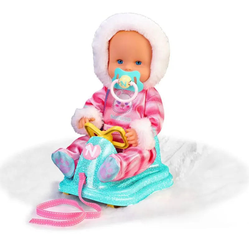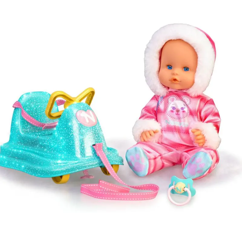 Llena Nenuco en su trineo con ruedas ¡Podrás llevarlo contigo donde quieras! Su nariz se pone rojita con el frio. Viste un adorable mono con pelo en la capucha y como siempre, va acompañado de su chupete. Tiene un tamaño de 35 cm aproximadamente y su cuerpo está fabricado en vinilo duro. Recomendado a partir de 2 años.