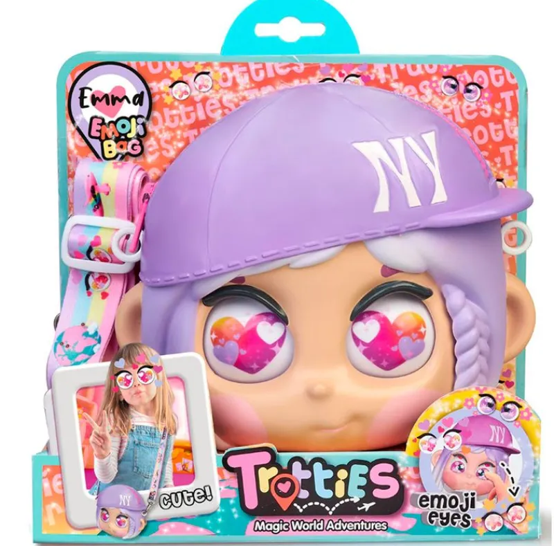 Bolsito de la colección Trotties con diseño inspirado en la muñeca Emma y con ojos de emojis cambiantes.
