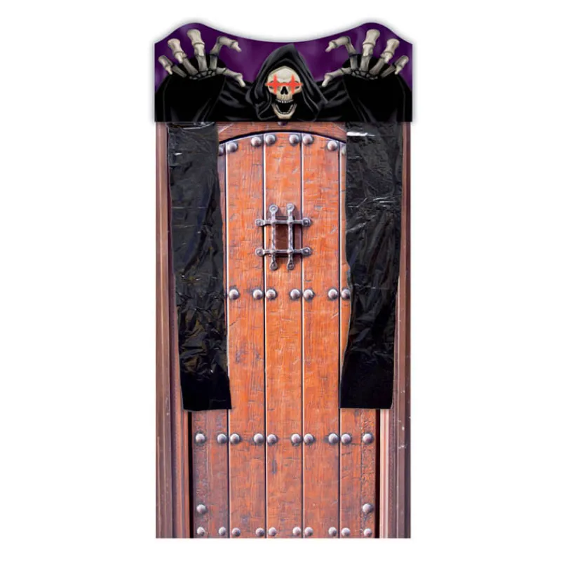 Ambienta tu casa en la terrorífica noche de Halloween con esta cortina con luz, con detalles de esqueleto.