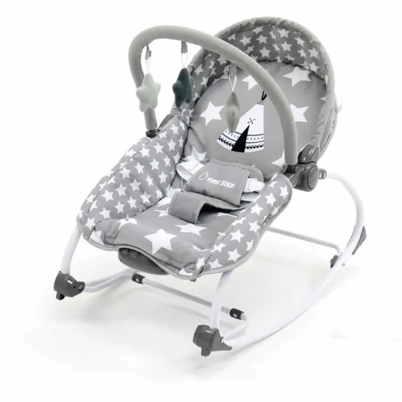 Ideal para comer, jugar y descansar la hamaca que cubre todas las necesidades de los primeros meses y se convierte en sillita cuando el bebé va creciendo.