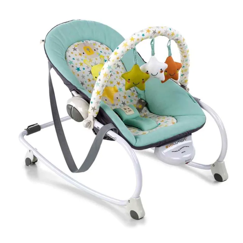 Incluye barra de actividades con peluches, melodías y vibración .Cuando el niño es más grande se convierte en una cómoda silla.