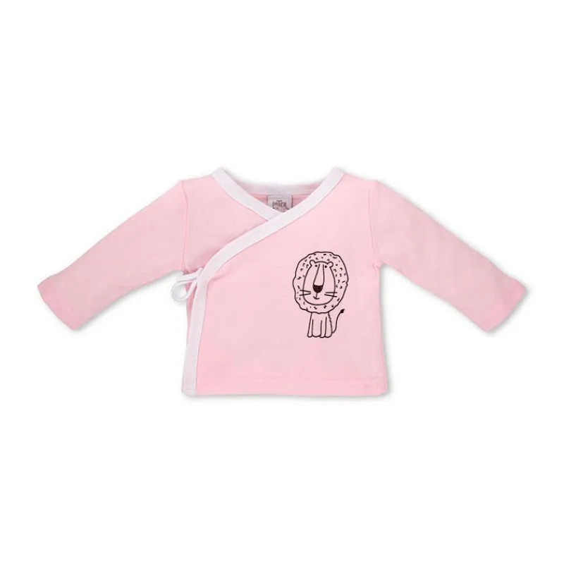 Set de nacimiento 5 piezas con animalitos ideal para hacer un regalo de 0-6m, formado por un babero, una camiseta cruzada, unos pantalones con pies, un gorro y unas manoplas.
