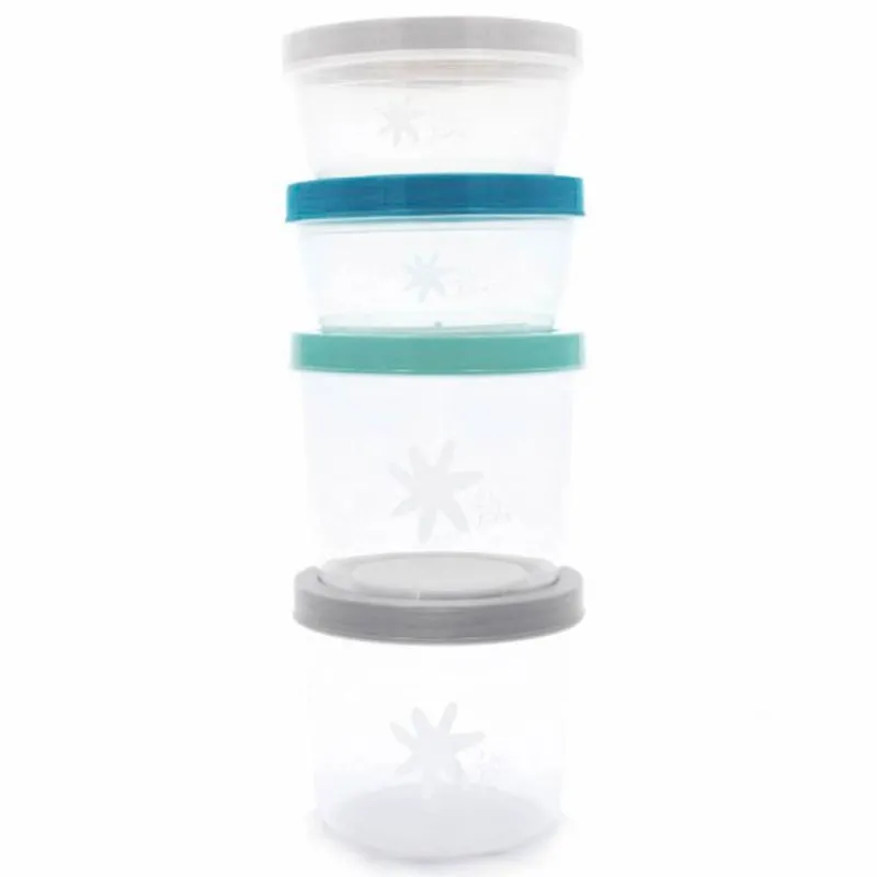 Pack que contiene 6 contenedores de comida apilables. Son herméticos para poder garantizar la conservación de los alimentos de tu bebé. Aptos tanto para microondas, congelador y esterilizador. Contiene 4 unidades de 250 ml y 2 unidades de 100 ml.