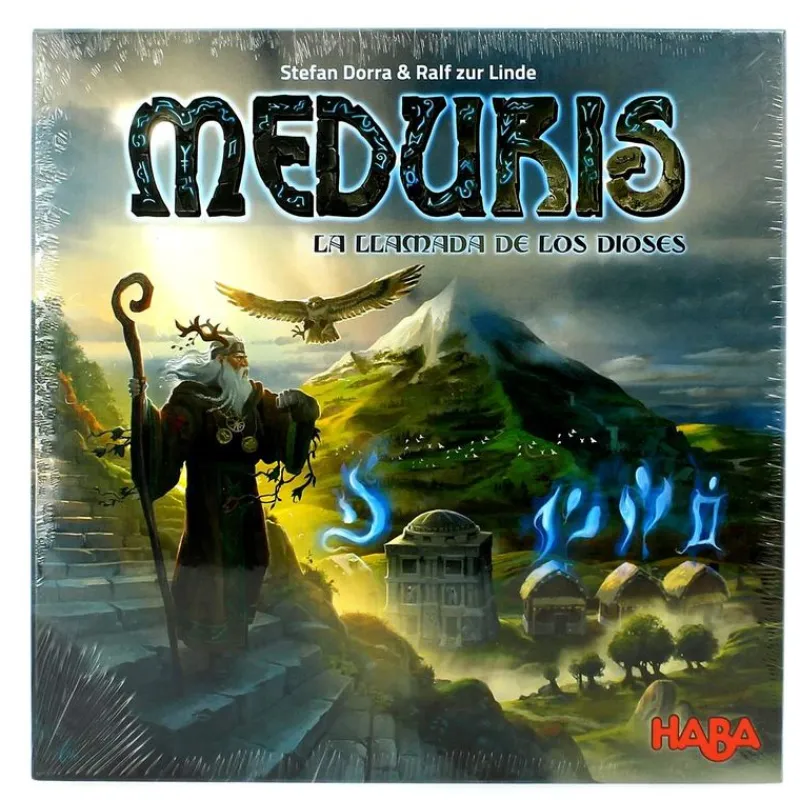 Debéis colonizar el pie de la montaña Meduris y para ello tenéis que seguir la llamada de los dioses. Tendréis que construir cabañas, prestar ofrendas al druida, acumular valiosas piedras y solo así, os podréis ganar el favor de los dioses. El juego incluye 4 cuenta puntos, 72 materias primas, 8 templos, 40 cabañas, 9 piedras rúnicas, 1 druida, 1 dado, 6 fichas bonus, 10 trabajadores, 4 fichas de 100, 1 tablero doble, 4 pantallas, 1 dado e instrucciones. De 2 a 4 jugadores. A partir de 10 años.