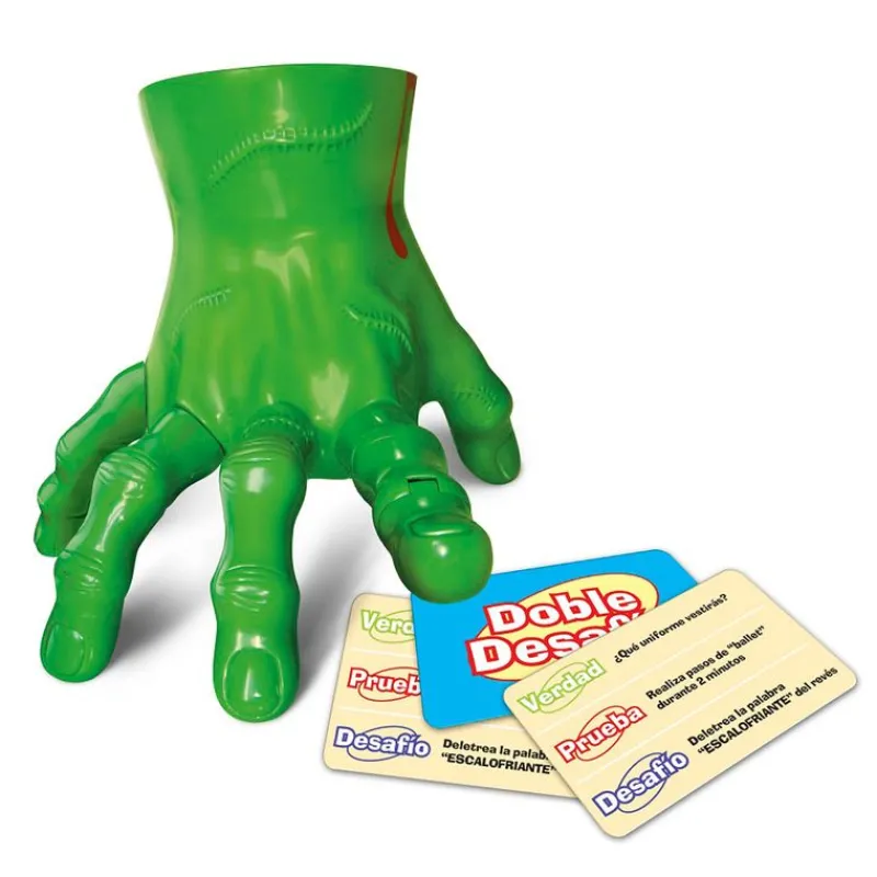 En el nuevo juego Prueba o verdad New los demás jugadores podrán ponerte un reto que deberás cumplir para seguir en el juego. Prueba o Verdad New es un emocionante y divertido juego de mesa en el que, si eres señalado por la mano verde, tendrás que elegir entre decir una verdad o realizar una prueba. El resto de jugadores valorarán tu respuesta o decidirán si has superado, o no, la prueba. En caso de que el resto de jugadores no crean tu respuesta, o si no superas la prueba que indica la carta, tendrás que someterte a un difícil desafío. Para ganar este juego tendrás que dejar apartados la vergüenza y los secretos. Edad recomendada a partir de 6 años. De 2 a 4 jugadores.