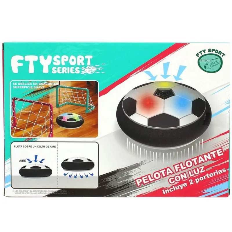 Increíble set de futbol Airbol para jugar en casa. La pelota se desliza en superficies lisas como suelos, alfombras o parquet, gracias a su colchón de aire. Además lleva luces y protecciones de espuma para que puedas jugar en la oscuridad y para proteger el mobiliario de golpes. Incluye 2 porterías. Funciona con4 pilas AA Inlcuidas.