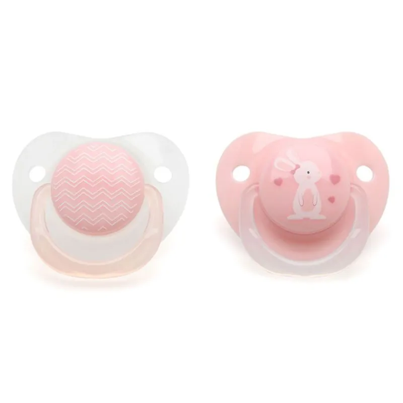 Pack de 2 chupetes con tetina de silicona de 6 a 18 meses, ideal para calmar a tu bebe.