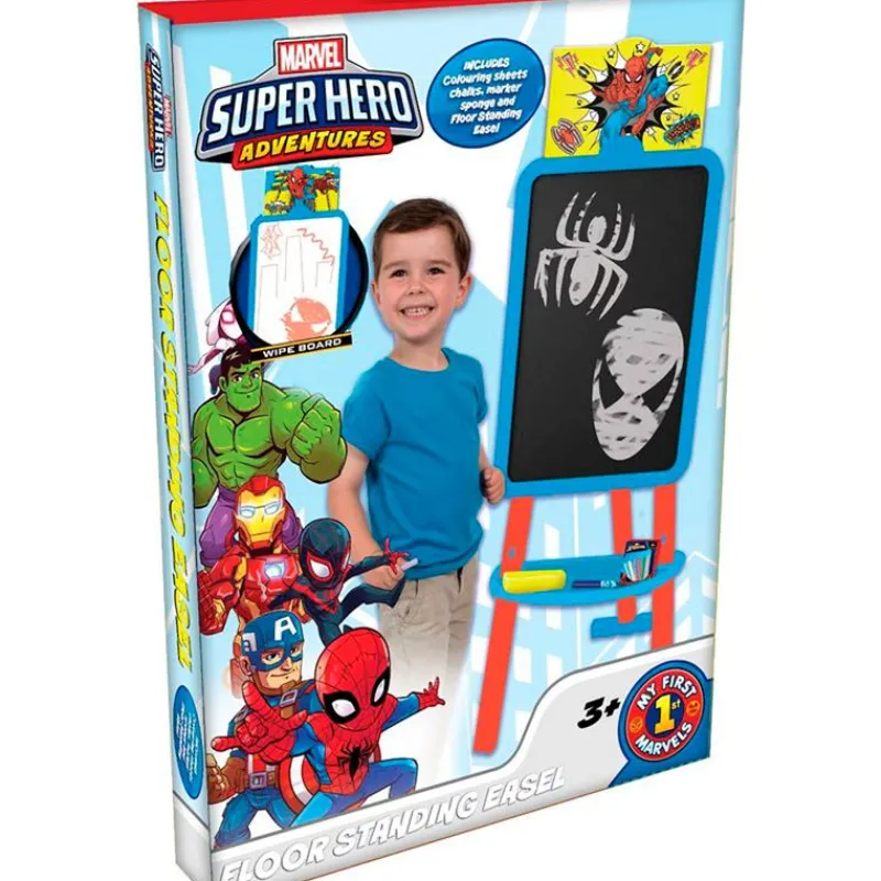 Pizarra para los más pequeños de la casa con diseños inspirados en sus superhéroes favoritos, los Vengadores. Contiene tizas, bolígrafo mágico y borrador. Por un lado es pizarra y por el otro pizarra blanca. Las dimensiones de la pizarra son de 120 cm de alto x 38 cm de largo x 40 cm de ancho aproximadamente. Recomendado a partir de 3 años.