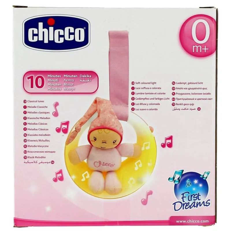 El panel se fija fácilmente a la cuna, relaja al recién nacido gracias a una selección de música y efectos luminosos. Decorado con un peluche blando sentado en la luna.