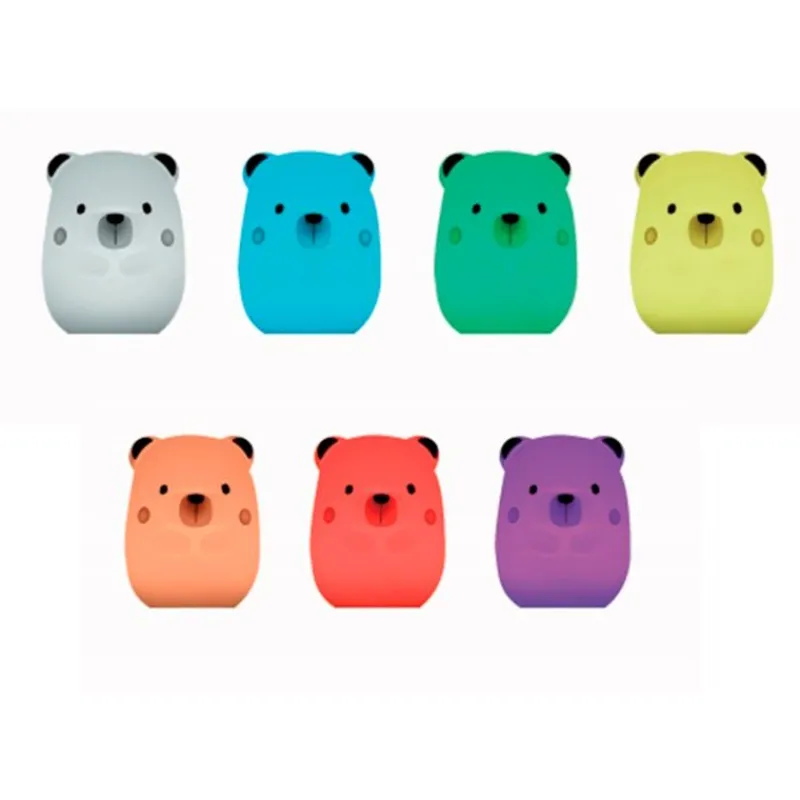 La luz Yum bear big tiene un diseño en forma de osito fabricada en silicona, que ilumina la habitación con una luz tenue y puede cambiar de colores para poder aportar equilibrio y armonía para su desarrollo sensorial.