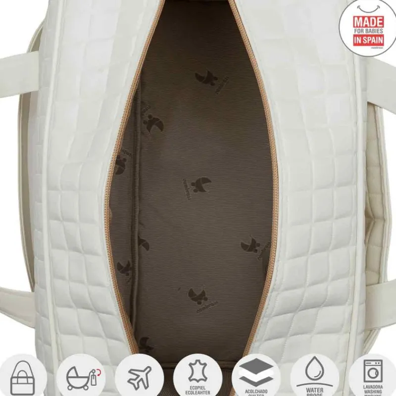 El Bolso Maletín de Cambrass es de uso maternal y sirve para transportar los productos necesarios de uso diario para el bebé especialmente en viajes. Su sistema de asas cortas de 60 cm. y asa larga de 120 cm. lo hace útil tanto como bolso de mano o maletín así como de bandolera o incluso para el carro. El tejido interior (con acabado resinado) con el que está confeccionado el bolso cuentan con un acabado impermeable que sumado a su base rígida aporta estabilidad evitando que pierda su forma tanto lleno como vacío e incluso después del lavado. Este bolso, cuya capacidad es de 25.8 litros, dispone de prácticos bolsillos frontales interiores y exteriores que aumentan su capacidad permitiendo guardar pequeños objetos. Además su cierre con cremallera YKK de alta calidad garantiza una larga duración.