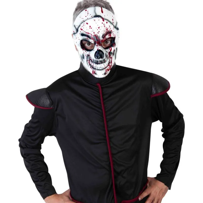 Terrorífica máscara con la que podrás asustar a todos durante Halloween. Tiene un diseño de calavera cubierto de sangre. NO incluye disfraz.