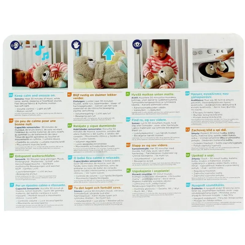 Dispone de 11 elementos sensoriales que ayudarán con el desarrollo de sentidos como la vista, el oído y el tacto del bebé. También desarrollará hábitos de sueño saludables.
