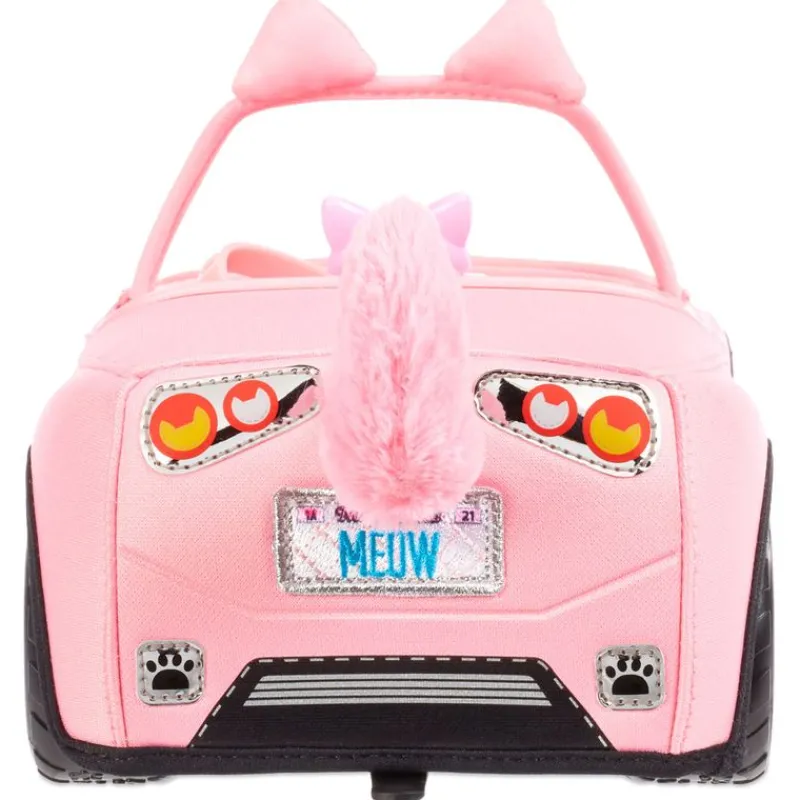 ¡Viaja con tus muñecas favoritas a todas partes! Coche de peluche de la colección NA!NA!NA! Surprise. Es un coche de tono rosa con muchos detalles, orejas, cola y ruedas que giran de verdad. Sus puertas se abren y cierran ¡Es un coche de peluche suave y blandito! Recomendado a partir de 3 años.