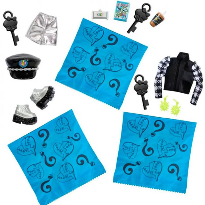 Caja de la colección Monster High Skulltimate Secrets en el que encontrarás la muñeca de Frankie Stein acompañada de 19 sorpresas, entre las que incluye ropa, accesorios y accesorios temáticos. Gracias a la tecnología Color Reveal y las sorpresas que se van revelando poco a poco dan un toque de magia y misterio característicos de la colección Monster High. El ataúd de Frankie Stein te permitirá guardar en el interior los accesorios gracias a los diferentes compartimentos que tiene. La figura es articulada en diferentes partes de su cuerpo, NO se puede mantener de pie por si sola. Recomendado a partir de 4 años.
