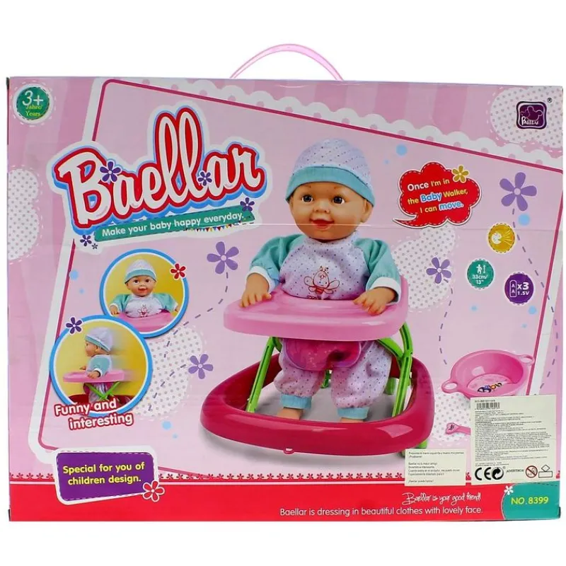 Completo set en el que encontrarás un adorable muñeco bebé y su andador.