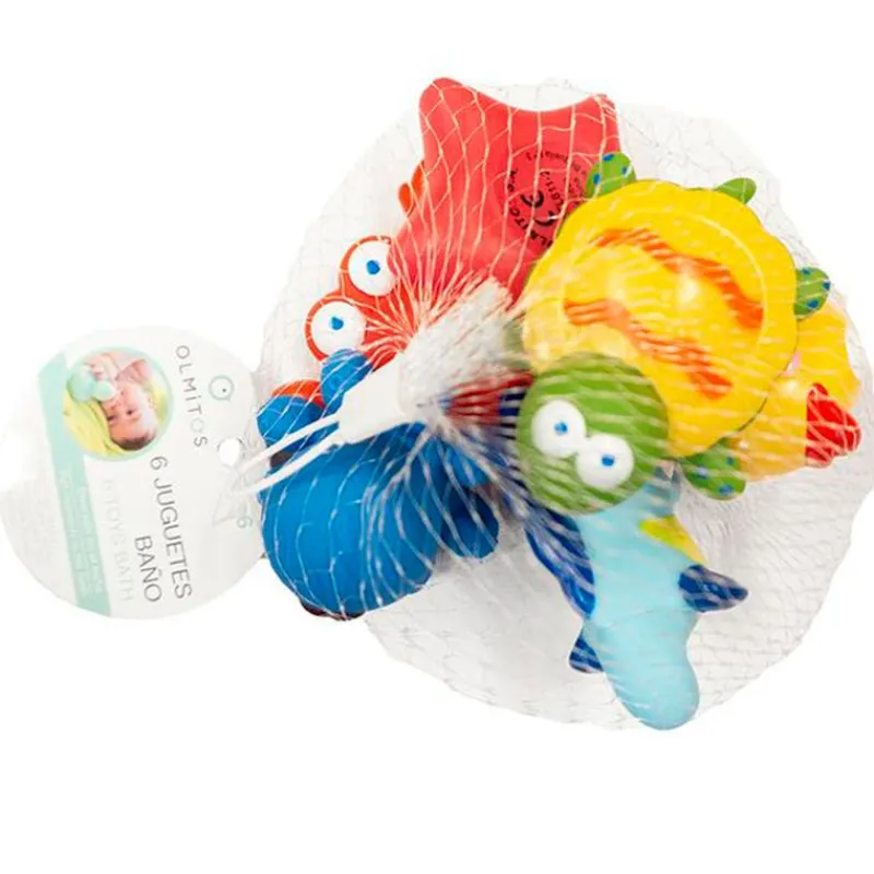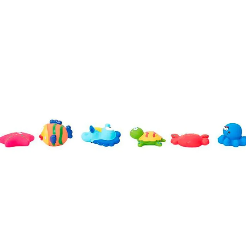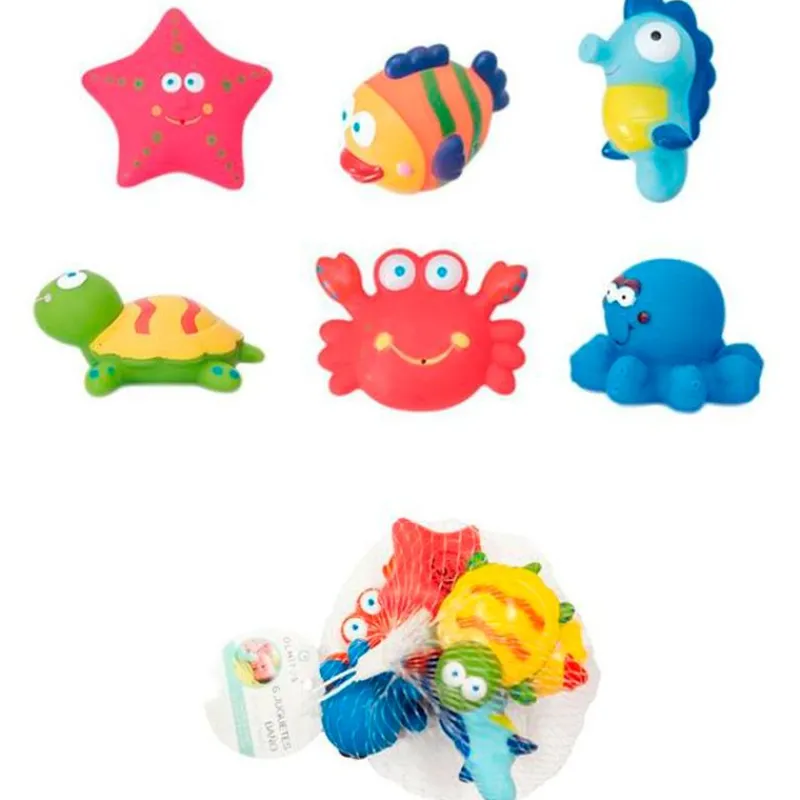 Divertido pack de 6 muñecos de baño de animalitos Marinos, con colores muy alegres y de varias formas que ayudará al bebe a desarrollar sus habilidades cognitivas a la vez que juega