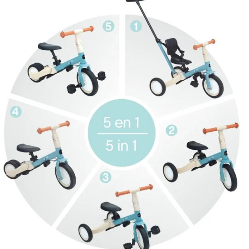 El Triciclo Gyro de Olmitos es una versión que se va adaptando al crecimiento del niño en cada etapa a medida que crece ya que pasa de Triciclo a bicicleta según las necesidades.