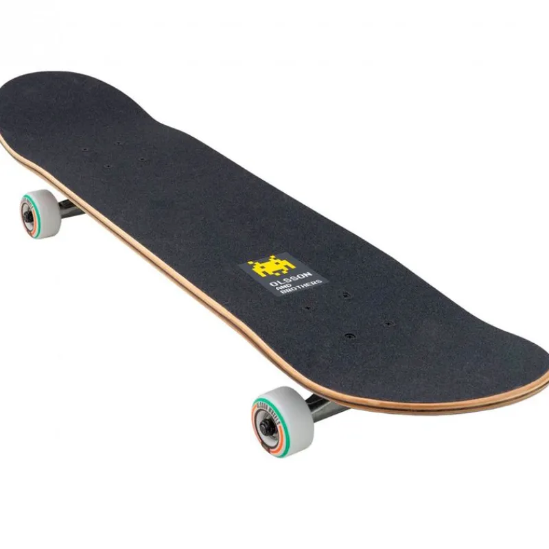 Space Invaders es un tipo de Skate, de la colección Olsson and Brothers, ligeramente más ancho, tanto para rampa como para la calle. Sus 8” dan la seguridad y confianza a los más grandes o los que busquen comodidad a la hora de patinar. Dispone de 7 capas 100% Premium de arce canadiense, ejes de aluminio reforzado 5.25”, ruedas creek SHR Urethane PRO Shape 53 mm, lija de agarre de alto rendimiento, rodamientos ABEC 7 y cóncavo medio. Sus dimensiones son de 30.5 cm de largo x 7.5 cm de ancho aproximadamente.