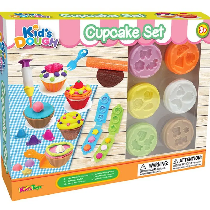 Pack con el que podrás abrir tu propia pastelería y hacer llamativos cupcakes. En el interior encontrarás 6 botes de plastilina con moldes para hacer las decoraciones de las magdalenas y más herramientas. Recomendado a partir de 3 años.
