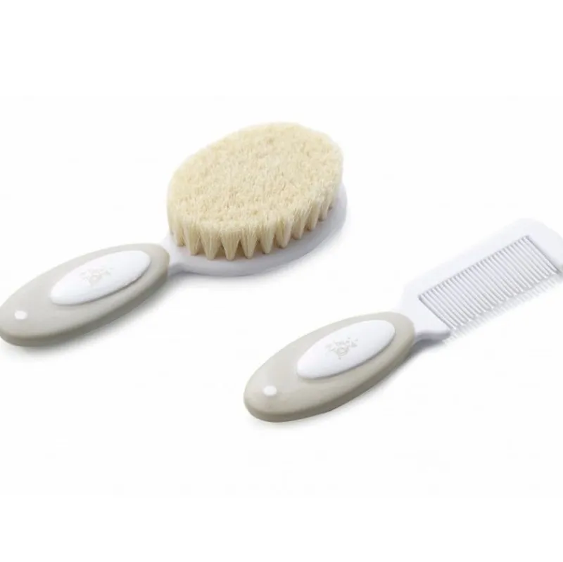 Pack ideal para llevarlo siempre contigo. El cepillo de cerdas naturales activará la circulación del cuero cabelludo de tu bebé, ayuda así al incremento del pelo. El peine cuenta con puntas redondas para no dañar su cabecita.